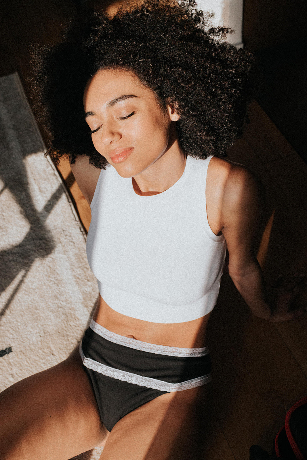 My Joy est une culotte menstruelle pensée pour épouser votre corps et vous procurer une vraie sensation de réconfort, de sécurité tout en étant élégante et douce.